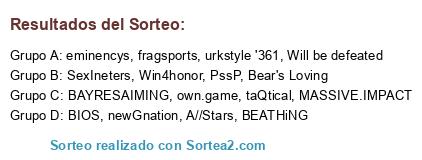Lista de participantes: Bear's Loving, SexIneters, A//Stars, BEATHiNG, fragsports, BAYRESAIMING, urkstyle '361, eminencys, Will be defeated, own.game, taQtical, MASSIVE.IMPACT, PssP, newGnation, BIOS, Win4honor.