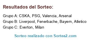 Lista de participantes: Atletico, Bayern, Liverpool, Arsenal, PSG, CSKA, Everton, Milan, Valencia, Fenerbache.