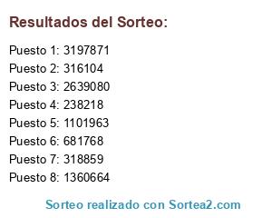 Este sorteo ha sido certificado por Sortea2. Sortea2 garantiza que: