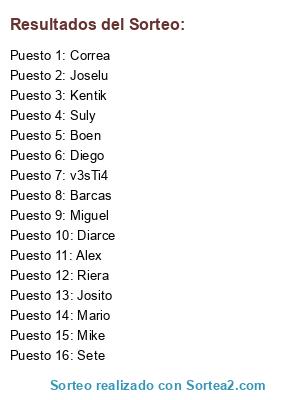 Resultados del sorteo: