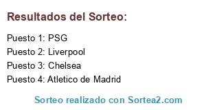 Lista de participantes: Atletico de Madrid, PSG, Chelsea, Liverpool.
