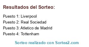 Lista de participantes: Real Sociedad, Atletico de Madrid, Tottenham, Liverpool.