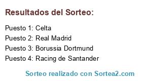 Lista de participantes: Celta, Borussia Dortmund, Real Madrid, Racing de Santander.