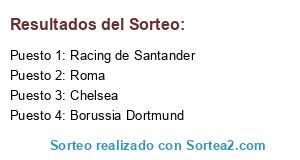 Lista de participantes: Racing de Santander, Borussia Dortmund, Roma, Chelsea.