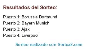 Lista de participantes: Liverpool, Borussia Dortmund, Bayern Munich, Ajax.