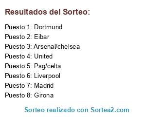 Lista de participantes: Eibar, Madrid, Girona, United, Dortmund, Liverpool, Psg/celta, Arsenal/chelsea.