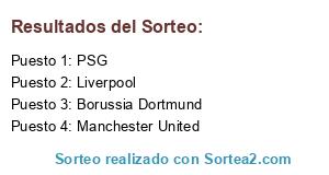 Lista de participantes: Manchester United, Liverpool, PSG, Borussia Dortmund.