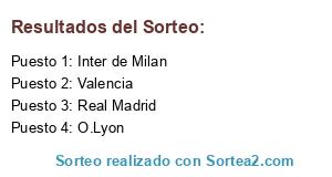 Lista de participantes: O.Lyon, Valencia, Inter de Milan, Real Madrid.