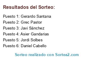 Lista de participantes: Gerardo Santana, Asier Gandarias, Jordi Solbes, Grec Pastor, Daniel Cabello, Javi Sánchez.