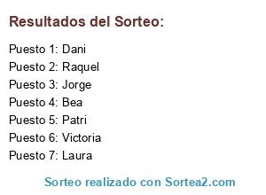 Lista de participantes: Raquel, Laura, Patri, Bea, Jorge, Dani, Victoria.