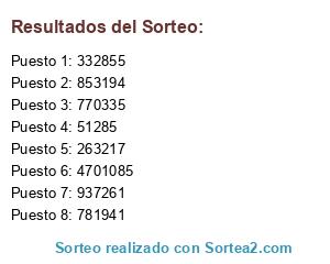 Este sorteo ha sido certificado por Sortea2. Sortea2 garantiza que: