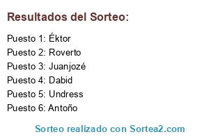 Lista de participantes: Antoño, Dabid, Undress, Juanjozé, Roverto, Éktor.