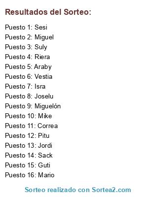 Resultados del sorteo: