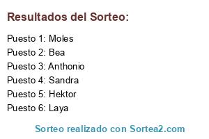 Lista de participantes: Anthonio, Hektor, Bea, Laya, Sandra, Moles.