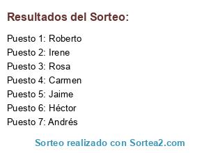 Resultados del sorteo: