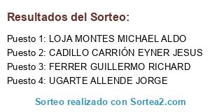 Lista de participantes: CADILLO CARRIÓN EYNER JESUS, LOJA MONTES MICHAEL ALDO, UGARTE ALLENDE JORGE, COLLAZOS PRADO ANTHONY RAY, FERRER GUILLERMO RICHARD.