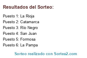 Lista de participantes: Formosa, Catamarca, San Juan, Río Negro, La Pampa, La Rioja.