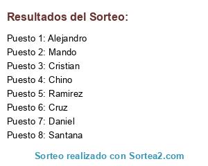 Lista de participantes: Cruz, Chino, Daniel, Alejandro, Cristian, Santana, Mando, Ramirez.