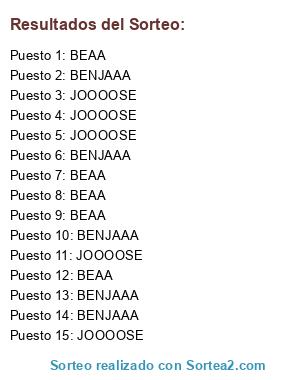 Lista de participantes: BEAA, JOOOOSE, BENJAAA, BEAA, JOOOOSE, BENJAAA, BEAA, JOOOOSE, BENJAAA, BEAA, JOOOOSE, BENJAAA, BEAA, JOOOOSE, BENJAAA.