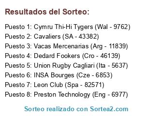 Lista de participantes: Union Rugby Cagliari (Ita - 5637), INSA Bourges (Cze - 6853), Dedard Fookers (Cro - 46139), Leon Club (Spa - 82571), Cymru Thi-Hi Tygers (Wal - 9762), Vacas Mercenarias (Arg - 11839), Preston Technology (Eng - 6977), Cavaliers (SA - 43382).