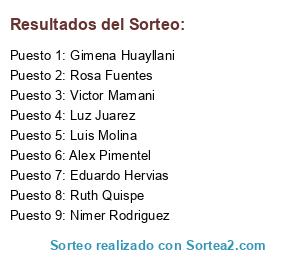 Lista de participantes: Rosa Fuentes, Eduardo Hervias, Gimena Huayllani, Luz Juarez, Victor Mamani, Luis Molina, Alex Pimentel, Ruth Quispe, Nimer Rodriguez.
