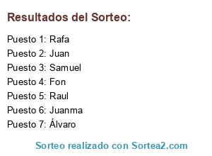 Lista de participantes: Samuel, Álvaro, Fon, Juan, Juanma, Rafa, Raul.
