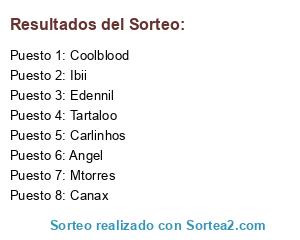 Lista de participantes: Mtorres, Canax, Angel, Tartaloo, Ibii, Edennil, Carlinhos, Cooldblood.