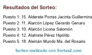 Resultados del sorteo: