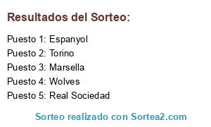 Lista de participantes: Wolves, Real Sociedad, Marsella, Torino, Espanyol.