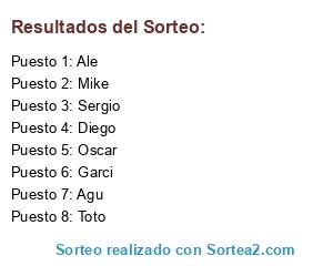Lista de participantes: Agu, Ale, Diego, Garci, Mike, Oscar, Sergio, Toto.