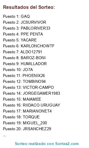 - Puesto 1: JRSANCHEZ29