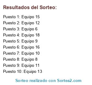 Lista de participantes: Equipo 1, Equipo 2, Equipo 3, Equipo 4, Equipo 5, Equipo 6, Equipo 7, Equipo 8, Equipo 9, Equipo 10, Equipo 11, Equipo 12, Equipo 13, Equipo 14, Equipo 15, Equipo 16, Equipo 17, Equipo 18.