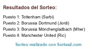 Lista de participantes: Borussia Dortmund (Jordi), Tottenham (Sarbi), Manchester United (Ric), Borussia Mönchengladbach (Mher).