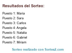 Resultados del sorteo: