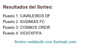 Lista de participantes: CAVALEIROS DF, VICIOXFIFA, SUDAKAS FC, COSMOS CREW.