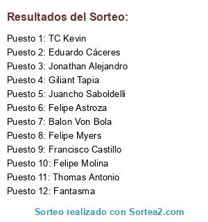 Lista de participantes: Giliant Tapia, Balon Von Bola, Jonathan Alejandro, Francisco Castillo, Eduardo Cáceres, Felipe Myers, TC Kevin , Juancho Saboldelli, Thomas Antonio, Felipe Astroza, Fantasma, Felipe Molina.