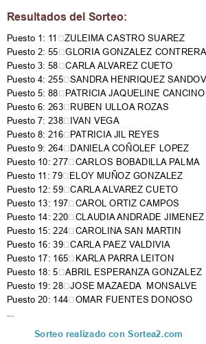 Lista de participantes: 1 ABRIL ESPERANZA GONZALEZ, 2 ABRIL ESPERANZA GONZALEZ, 3 ABRIL ESPERANZA GONZALEZ, 4 ABRIL ESPERANZA GONZALEZ, 5 ABRIL ESPERANZA GONZALEZ, 6 MYRIAM LORENA VERGARA, 7 LUCIA NUÑEZ PINTO, 8 GERMAN KRIMERMAN, 9 ZULEIMA CASTRO SUAREZ, 10 ZULEIMA CASTRO SUAREZ, 11 ZULEIMA CASTRO SUAREZ, 12 ZULEIMA CASTRO SUAREZ, 13 MAGGIE PASTEN FAJARDO, 14 MAGGIE PASTEN FAJARDO, 15 MAGGIE PASTEN FAJARDO, 16 MAGGIE PASTEN FAJARDO, 17 MAGGIE PASTEN FAJARDO, 18 JOHANNA POFFAL, 19 PAMELA ROJAS LETELIER, 20 PAMELA ROJAS LETELIER, 21 PAMELA ROJAS LETELIER, 22 PAMELA ROJAS LETELIER, 23 PAMELA ROJAS LETELIER, 24 CLAUDIA ANDRADE, 25 CLAUDIA ANDRADE, 26 ANA ALEJANDRA ORTEGA, 27 ANA ALEJANDRA ORTEGA, 28 JOSE MAZAEDA MONSALVE, 29 PATRICIA RODRIGUEZ BAHAMONDE, 30 PATRICIA RODRIGUEZ BAHAMONDE, 31 PATRICIA RODRIGUEZ BAHAMONDE, 32 GERMAN KRIMERMAN, 33 GERMAN KRIMERMAN, 34 ROXANA LORETO CASTRO, 35 ROXANA LORETO CASTRO, 36 ROXANA LORETO CASTRO, 37 KAREN BARRERA ALVARADO, 38 CARLA PAEZ VALDIVIA, 39 CARLA PAEZ VALDIVIA, 40 SONIA VASQUEZ, 41 SONIA VASQUEZ, 42 SONIA VASQUEZ, 43 SONIA VASQUEZ, 44 SONIA VASQUEZ, 45 LAURA ROMERO, 46 MASSIELA PEREZ ASTUDILLO, 47 MASSIELA PEREZ ASTUDILLO, 48 CAROLINA VARGAS VERDUGO, 49 CAROLINA VARGAS VERDUGO, 50 CAROLINA VARGAS VERDUGO, 51 CAROLINA VARGAS VERDUGO, 52 CAROLINA VARGAS VERDUGO, 53 GLORIA GONZALEZ CONTRERAS, 54 GLORIA GONZALEZ CONTRERAS, 55 GLORIA GONZALEZ CONTRERAS, 56 GLORIA GONZALEZ CONTRERAS, 57 GLORIA GONZALEZ CONTRERAS, 58 CARLA ALVAREZ CUETO, 59 CARLA ALVAREZ CUETO, 60 DANIELA COÑOLEF LOPEZ, 61 DANIELA COÑOLEF LOPEZ, 62 GIANELLA ELLIGQUE MARTINEZ, 63 GIANELLA ELLIGQUE MARTINEZ, 64 GIANELLA ELLIGQUE MARTINEZ, 65 GIANELLA ELLIGQUE MARTINEZ, 66 GIANELLA ELLIGQUE MARTINEZ, 67 SANDRA HENRIQUEZ SANDOVA, 68 SANDRA HENRIQUEZ SANDOVA, 69 SANDRA HENRIQUEZ SANDOVA, 70 MARIANA CARBACHO TRUJILLO, 71 JOSE CARBACHO TRUJILLO, 72 CLAUDIA ARAYA MORENO, 73 CLAUDIA ARAYA MORENO, 74 LILI MARGARITA, 75 LILI MARGARITA, 76 LILI MARGARITA, 77 ANGELA PINTO LUNA, 78 ANGELA PINTO LUNA, 79 ELOY MUÑOZ GONZALEZ, 80 FELIPE GONZALEZ, 81 MATILDE GONZALEZ, 82 IGNACIO GONZALEZ, 83 MARIA LIDIA RODRIGUEZ VALDEBENITO, 84 MARIA LIDIA RODRIGUEZ VALDEBENITO, 85 MARIA LIDIA RODRIGUEZ VALDEBENITO, 86 MARIELA INOSTROZA CATILAO, 87 MARIELA INOSTROZA CATILAO, 88 PATRICIA JAQUELINE CANCINO, 89 PATRICIA JAQUELINE CANCINO, 90 MARIA RIQUELME, 91 CAROLINA ORTEGA, 92 MASSIELA PEREZ ASTUDILLO, 93 MASSIELA PEREZ ASTUDILLO, 94 MACARANE SALAZAR CEA, 95 JAVIERA GOMEZ ABURTO, 96 DANIELA COÑOLEF LOPEZ, 97 DANIELA COÑOLEF LOPEZ, 98 MALENA RUIZ, 99 MALENA RUIZ, 100 MALENA RUIZ, 101 KARLA CORTES GUZMAN, 102 ALESSANDRA PICCOLINI, 103 ALESSANDRA PICCOLINI, 104 ALESSANDRA PICCOLINI, 105 ALESSANDRA PICCOLINI, 106 ALESSANDRA PICCOLINI, 107 ANDREA DEL CARMEN BAEZA, 108 ANDREA DEL CARMEN BAEZA, 109 ANDREA DEL CARMEN BAEZA, 110 ANDREA DEL CARMEN BAEZA, 111 ANDREA DEL CARMEN BAEZA, 112 PAULINA MUÑOZ, 113 SILVIA SOTOMAYOR ROCO, 114 SILVIA SOTOMAYOR ROCO, 115 SILVIA SOTOMAYOR ROCO, 116 SILVIA SOTOMAYOR ROCO, 117 SILVIA SOTOMAYOR ROCO, 118 BEATRIZ ROSALES PERALTA, 119 BEATRIZ ROSALES PERALTA, 120 LORENA RAMIREZ ESPINA, 121 LORENA RAMIREZ ESPINA, 122 CAROLINA VALENZUELA FERNA, 123 CAROLINA VALENZUELA FERNA, 124 CAROLINA VALENZUELA FERNA, 125 CAROLINA VALENZUELA FERNA, 126 KAREN ARAVENA CID, 127 KAREN ARAVENA CID, 128 ROSA MIRANDA GONZALEZ, 129 KATHERINE CORONADO SIERPE, 130 KATHERINE CORONADO SIERPE, 131 JOHANNA LET MAYR SOTO, 132 JOHANNA LET MAYR SOTO, 133 JOHANNA LET MAYR SOTO, 134 SOLANGE PINILLA OLIVARES, 135 IVAN DEL RIO CONCHA, 136 JORGE FREDES LEIVA, 137 escobar henriquez, 138 escobar henriquez, 139 escobar henriquez, 140 escobar henriquez, 141 escobar henriquez, 142 JOHANNA CONTRERAS GONZALEZ, 143 JOHANNA CONTRERAS GONZALEZ, 144 OMAR FUENTES DONOSO, 145 OMAR FUENTES DONOSO, 146 OMAR FUENTES DONOSO, 147 OMAR FUENTES DONOSO, 148 OMAR FUENTES DONOSO, 149 ROBERTO YEFI, 150 CRISTIAN ALTAMIRANO LARA, 151 CRISTIAN ALTAMIRANO LARA, 152 CRISTIAN ALTAMIRANO LARA, 153 CRISTIAN ALTAMIRANO LARA, 154 CRISTIAN ALTAMIRANO LARA, 155 ALEN YEFI HUENCHUMAN, 156 KAREN JARA GUZMAN, 157 KAREN JARA GUZMAN, 158 KAREN JARA GUZMAN, 159 DANIELA HUENCHUMAN, 160 DEBORAH CASTRO SANCHEZ, 161 DEBORAH CASTRO SANCHEZ, 162 DEBORAH CASTRO SANCHEZ, 163 MARITE MORALES, 164 CARINA CASTILLO VILLAGRAN, 165 KARLA PARRA LEITON, 166 KARLA PARRA LEITON, 167 KARLA PARRA LEITON, 168 MILLARAY PAILANCA, 169 HUGO VALENZUELA RAMIREZ, 170 HUGO VALENZUELA RAMIREZ, 171 HUGO VALENZUELA RAMIREZ, 172 CARMEN PALMA VALDERRAMA, 173 CARMEN PALMA VALDERRAMA, 174 AYELEN PAILANCA, 175 PATRICIA HERRERA SEPULVEDA, 176 PATRICIA HERRERA SEPULVEDA, 177 PATRICIA HERRERA SEPULVEDA, 178 ALICIA CESPEDES ALVARADO, 179 ALICIA CESPEDES ALVARADO, 180 ALICIA CESPEDES ALVARADO, 181 ANDRADE JIMENEZ, 182 ANDRADE JIMENEZ, 183 VALERIA CASTAÑEDA ORELLANA, 184 VALERIA CASTAÑEDA ORELLANA, 185 VALERIA CASTAÑEDA ORELLANA, 186 BEATRIZ ROSALES PERALTA, 187 BEATRIZ ROSALES PERALTA, 188 BEATRIZ QUEVEDO TORRES, 189 BEATRIZ QUEVEDO TORRES, 190 BRUNO GATICA, 191 BRUNO GATICA, 192 BRUNO GATICA, 193 BRUNO GATICA, 194 BRUNO GATICA, 195 BEATRIZ ROSALES PERALTA, 196 BEATRIZ ROSALES PERALTA, 197 CAROL ORTIZ CAMPOS, 198 DANIELA COÑOLEF LOPEZ, 199 DANIELA COÑOLEF LOPEZ, 200 CAROL ORTIZ CAMPOS, 201 PAMELA OLATE CABEZAS, 202 JORGE RIQUELME, 203 ANA ORTEGA RIQUELME, 204 ANA ORTEGA RIQUELME, 205 DORIS PEREZ VILLANUEVA, 206 DORIS PEREZ VILLANUEVA, 207 OJEDA CARE YESSI, 208 OJEDA CARE YESSI, 209 OJEDA CARE YESSI, 210 OJEDA CARE YESSI, 211 OJEDA CARE YESSI, 212 JIMENA FAUNDEZ BELMAR, 213 PATRICIA JIL REYES, 214 PATRICIA JIL REYES, 215 PATRICIA JIL REYES, 216 PATRICIA JIL REYES, 217 PATRICIA JIL REYES, 218 BRUNO BRAVO, 219 CLAUDIA ANDRADE JIMENEZ, 220 CLAUDIA ANDRADE JIMENEZ, 221 FRANCISCO PAILANCA, 222 LILIAN ZAPATA VAZQUEZ, 223 CAROLINA SAN MARTIN, 224 CAROLINA SAN MARTIN, 225 CAROLINA SAN MARTIN, 226 CAROLINA SAN MARTIN, 227 CAROLINA SAN MARTIN, 228 CONSTANZA BRAVO PASTEN, 229 CONSTANZA BRAVO PASTEN, 230 CONSTANZA BRAV