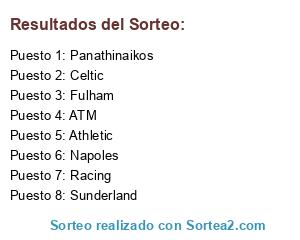 Lista de participantes: Sunderland, Racing, Fulham, Celtic, ATM, Athletic, Napoles, Panathinaikos.