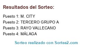 Lista de participantes: TERCERO GRUPO A, M. CITY, RAYO VALLECANO, MÁLAGA.