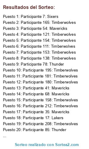 - Puesto 16: Participante 212: Timberwolves