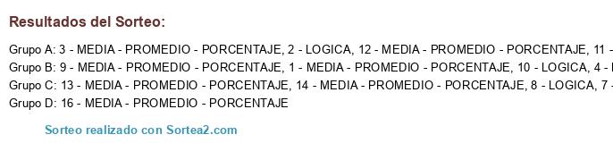 Lista de participantes: 8 - LOGICA, 11 - LOGICA, 4 - LOGICA, 2 - LOGICA, 7 - LOGICA, 10 - LOGICA, 1 - MEDIA - PROMEDIO - PORCENTAJE, 13 - MEDIA - PROMEDIO - PORCENTAJE, 14 - MEDIA - PROMEDIO - PORCENTAJE, 3 - MEDIA - PROMEDIO - PORCENTAJE, 9 - MEDIA - PROMEDIO - PORCENTAJE, 12 - MEDIA - PROMEDIO - PORCENTAJE, 16 - MEDIA - PROMEDIO - PORCENTAJE.