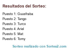 Lista de participantes: Tomy, Tango, Turco, Guusfraba, Ariel, Mat.