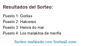Lista de participantes: Halcones, Gorilas, Herois do mar, Los malakitos de menfis.