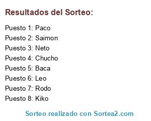 Lista de participantes: Rodo, Saimon, Chucho, Neto, Paco, Kiko, Baca, Leo.