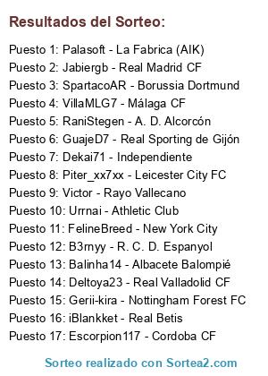Lista de participantes: Gerii-kira - Nottingham Forest FC, Victor - Rayo Vallecano, iBlankket - Real Betis, FelineBreed - New York City, Urrnai - Athletic Club, Palasoft - La Fabrica (AIK), Escorpion117 - Cordoba CF, B3rnyy - R. C. D. Espanyol, VillaMLG7 - Málaga CF, Balinha14 - Albacete Balompié, RaniStegen - A. D. Alcorcón, GuajeD7 - Real Sporting de Gijón, Dekai71 - Independiente, Deltoya23 - Real Valladolid CF, Jabiergb - Real Madrid CF, Piter_xx7xx - Leicester City FC, SpartacoAR - Borussia Dortmund.