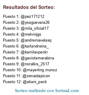 Lista de participantes: @andreinavelasq , @eliani_peck , @gaviotamarabina (3 participaciones), @kamilavpeckr , @karlandreina_ , @mayerling.munoz (3 participaciones), @melvinjgs (10 participaciones), @mila_oficial17 (5 participaciones), @noralkis_2517 , @pez171212 (16 participaciones), @ysaguevara26 (9 participaciones), @zenaidapicon.