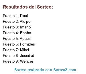 Lista de participantes: Enpho, Apaez, Raul, Imanol, Mikel, Wences, Aldipe, Fornides, Josedvd.