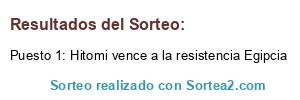 Lista de participantes: Hitomi vence a la resistencia Egipcia, Hitomi vence a la reistencia Egipcia 2, La Resistencia derrota a Hitomi.