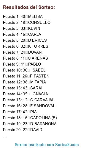 Resultados del sorteo: