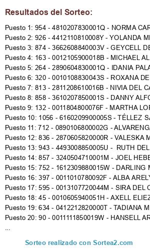 Accesibilidad del sorteo: El sorteo es público. Todo el mundo podrá acceder a él desde el listado de sorteos guardados.